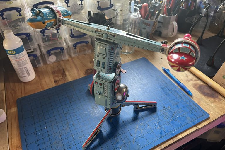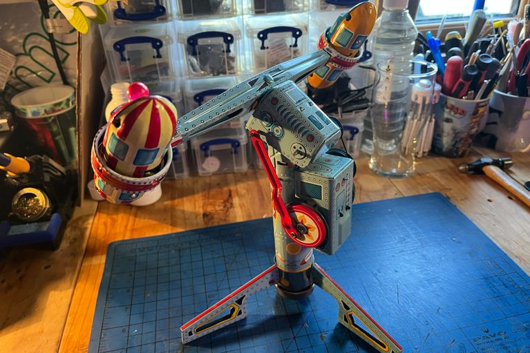 Vintage Nomura Tin Bartender Toy - This one arrived in the workshop and needed substantial restoration. The toy needed a complete rewire, the steel frame was bent and needed straightening, all the clothing was given an honest clean to prevent anymore wear on the fabric, the clockwork mechanism needed a service, the battery contacts were replaced and the internal smoke box repaired. Both arms needed repair and then a shaker & cocktail glass were 3D printed to complete the toy. This was an amazing item to work on, and I'm pleased say it was returned to our client so they could present it to their dad.